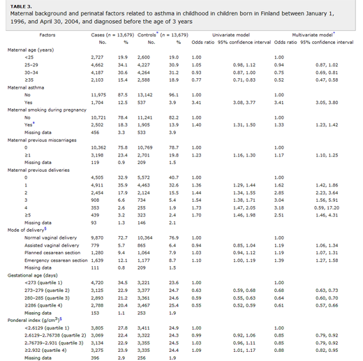2. Are women with asthma more likely to have C-sections and their children have inherited asthma from them? In the Nimwegen paper cited by Dr. Sloan, the authors actually found that there was no association between C-section and childhood asthma: